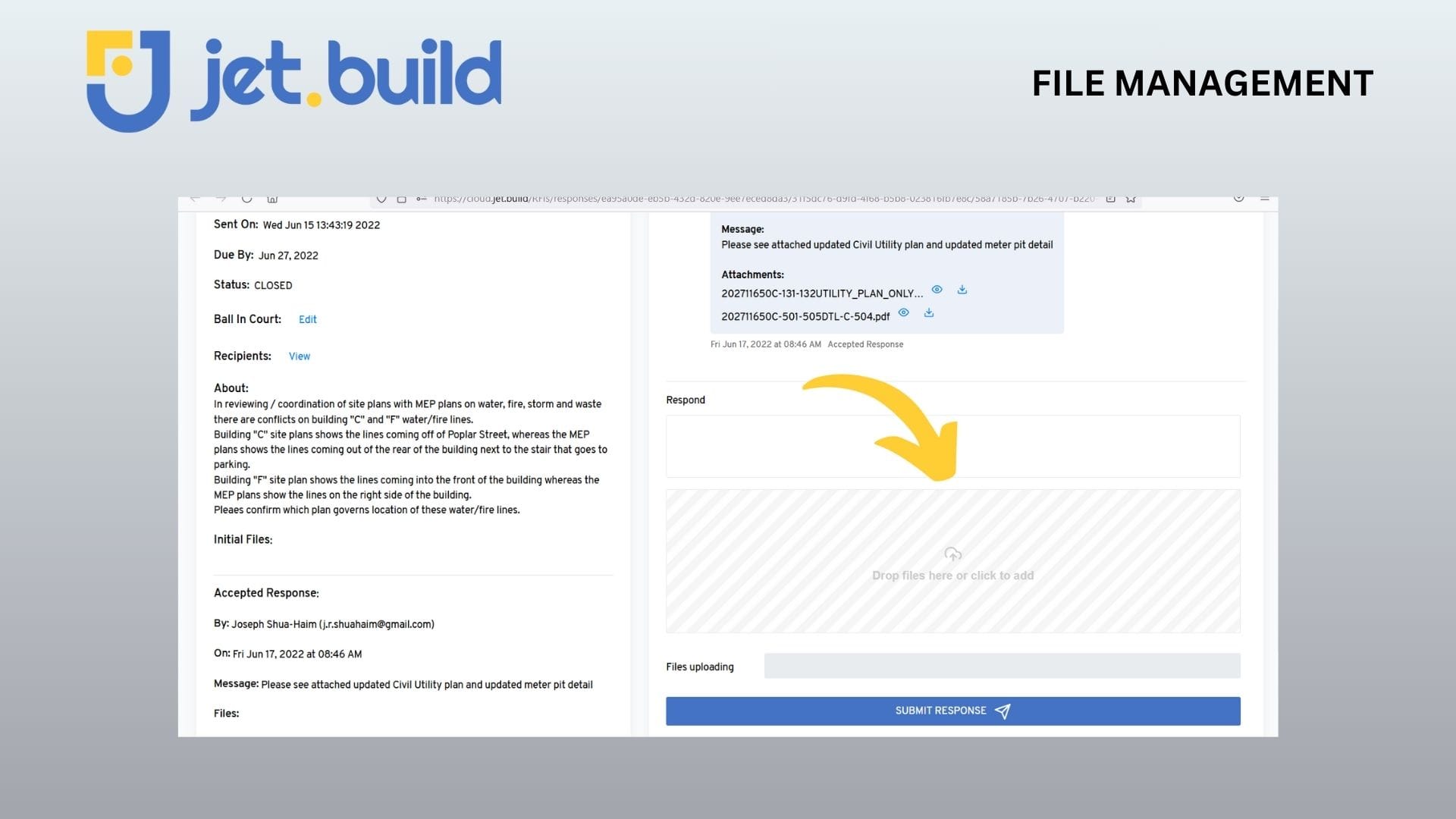 - Drawings, files, meetings, permits